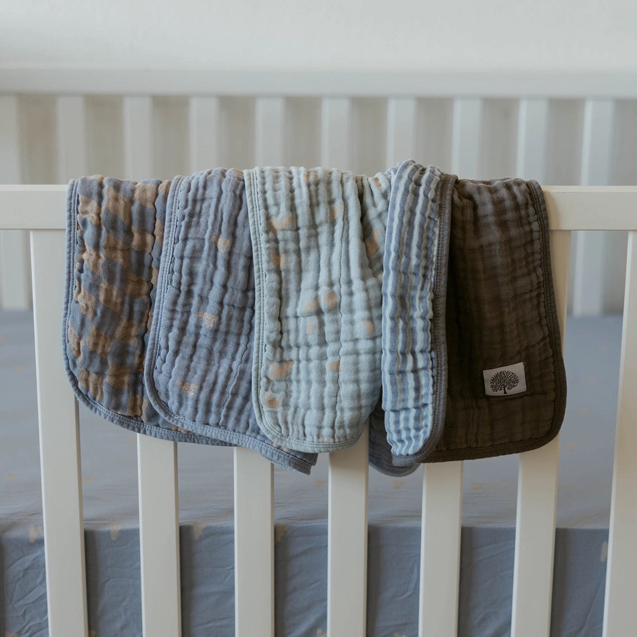 Our Muslin Cotton Burp Cloths are a must-have for any baby's nursery. Buttery soft for burping and nursing, and oversized to clean up any spit up or mess.
