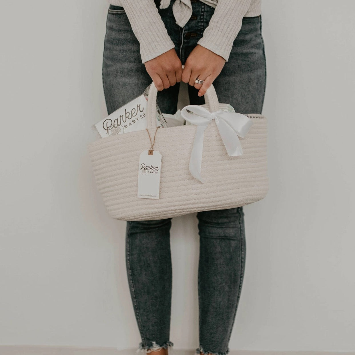 Mom's change a lot of diapers, and they need to keep their routine organized and flexible! Our Rope Diaper Caddy is the perfect nursery accessory. It's ideal for organizing changing table supplies, pumping gear, and baby toys. Made with durable rope that lasts years without wear and tear. Features: - 3 inner compartments for organization - Long, sturdy handles that hold weight - Neutral rope design to complement any nursery The Rope Diaper Caddy stores diapers, wipes, cream, and accessories for a perfectly organized changing station. It can also hold craft supplies, children's books, or snacks and outfits in the car. Great as a gift basket for baby showers. Available in neutral gray or white to blend into any environment. Offer your customers baby products that make life easier. Our Rope Diaper Caddy will simplify their routine, keep them organized, and add style to any space. Add our Rope Diaper Caddy to your product lineup and grow your business! Dimensions: 13 x 9 x 7"