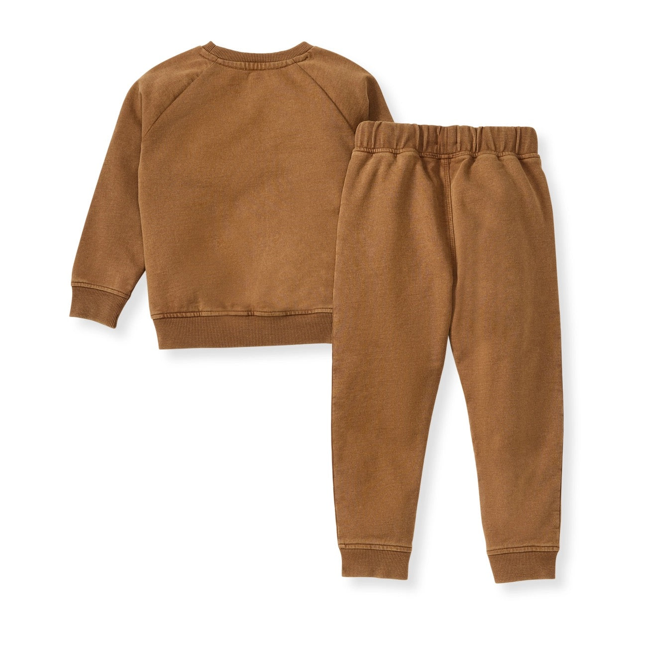 Get ready for kickoff in this acid wash football sweatshirt set! Sweatshirt and jogger set 100% organic cotton French terry sweatshirt and pant Raglan sweatshirt with embroidery for football detail 2x2 cuffs and waistband Functional drawstring on pant Made in...